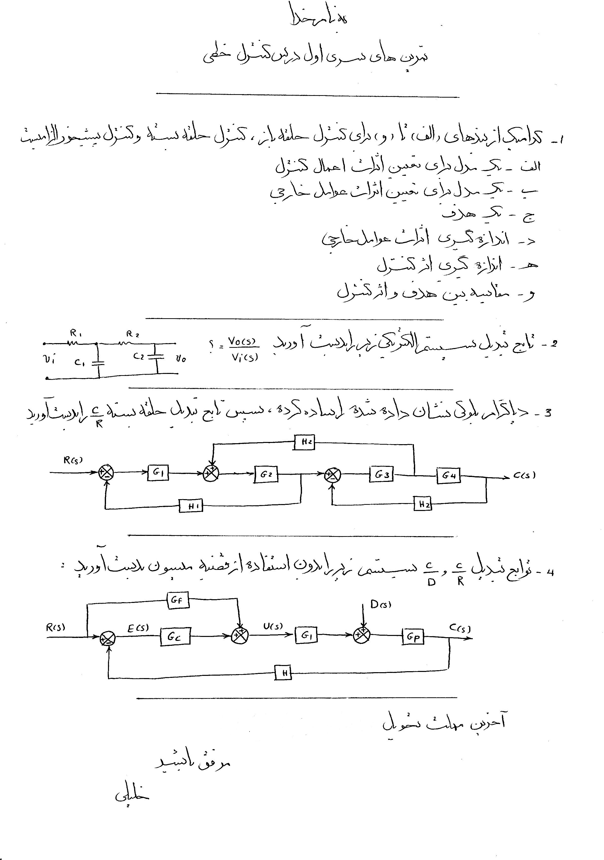 تمرین های سری اول درس " سیستمهای کنترل خطی "