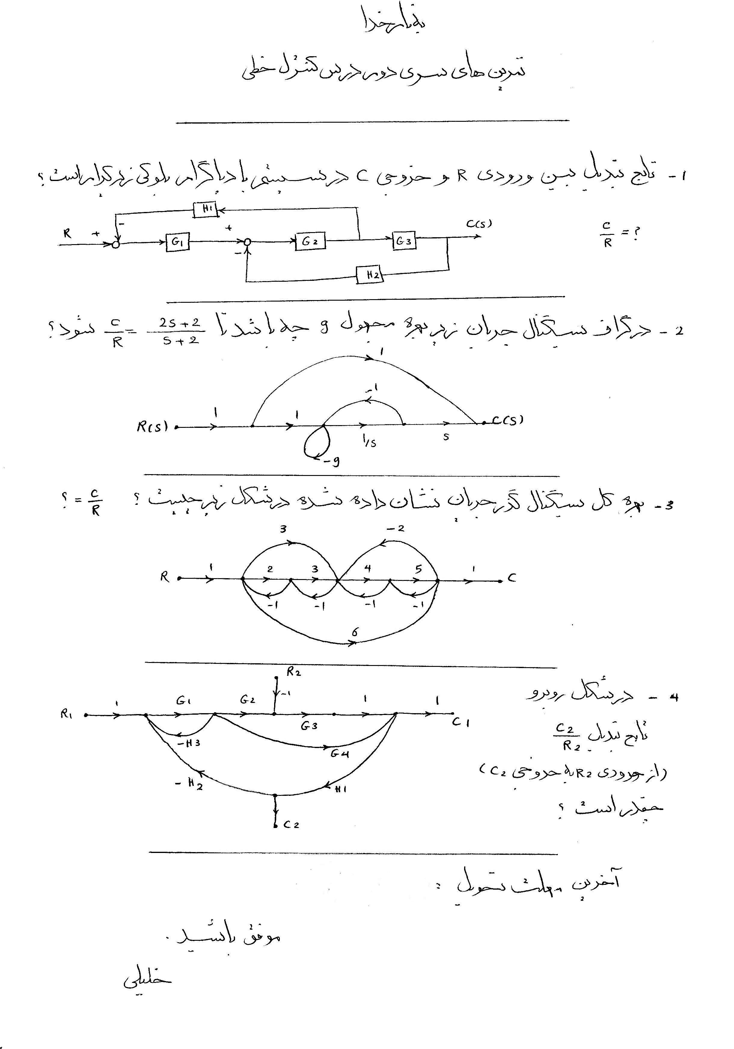 دریافت تمرینهای سری دوم سیستمهای کنترل خطی1