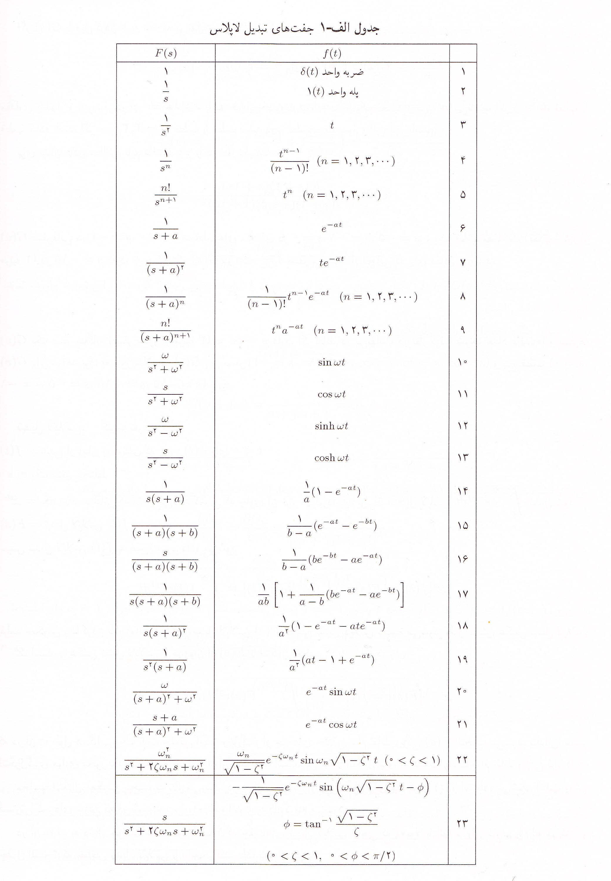 در قسمت ادامه مطلب جدول های تبدیل لاپلاس از کتاب "مهندسی کنترل نوین" به تالیف "کاتسوهیکو اوگاتا" و ترجمه اساتید "دکتر علی خاکی صدیق و دکتر پرویز جبه دار مارالانی"، اسکن و ضمیمه شده است لطفا مطالعه کنید.